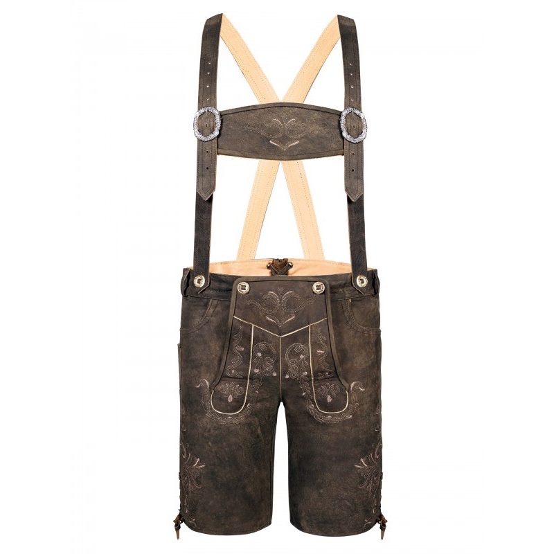 Traditional Bavarian knee-length leather shorts, ideal for Oktoberfest, festivals, or casual alpine-inspired wear.