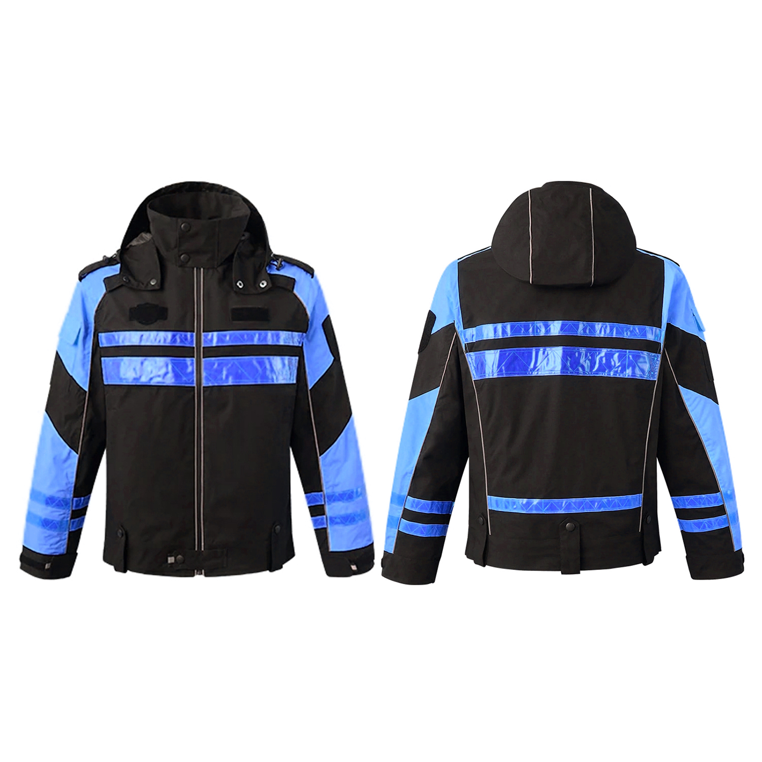 It has two lower pockets and an adjustable drawstring work wear hood.